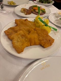 こんばんは🌛 はるひです! 今日も1日お疲れ様です🥰 旅行最後の夜ご飯🌙 シュニッツェル! 飛行機乗るのが嫌になる💦 でも帰ってお仕事しないと、、 帰ったらお勉強✍ 頑張ります!! では!